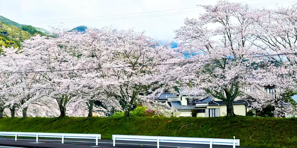 毎年3月下旬には、お茶カフェ裏の桜並木が満開になります。